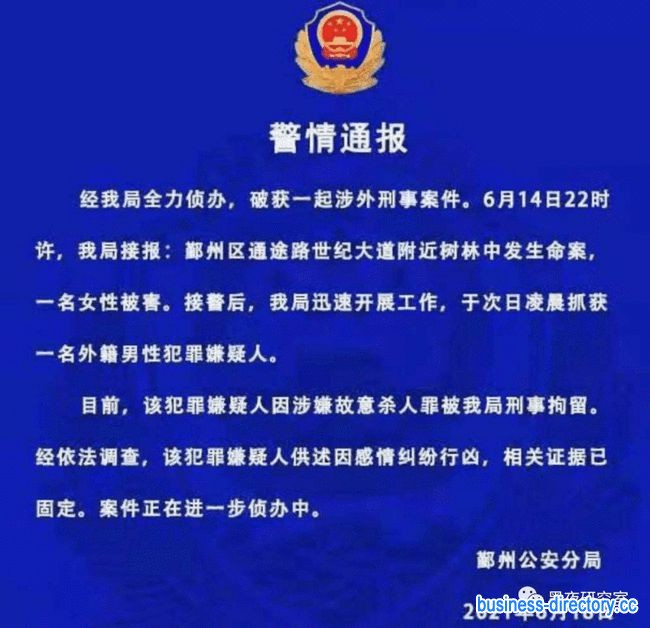 但是到了警方这里完全变了味道!首先是一名外籍男性,模糊了美国国籍非洲裔黑人这一鲜明特征,其次用感情纠纷这一个带有双方共同责任的词语,含糊不清,企图转移大众视线,掩盖黑人外教诱骗强奸杀人这一极度危险的恶性事件!